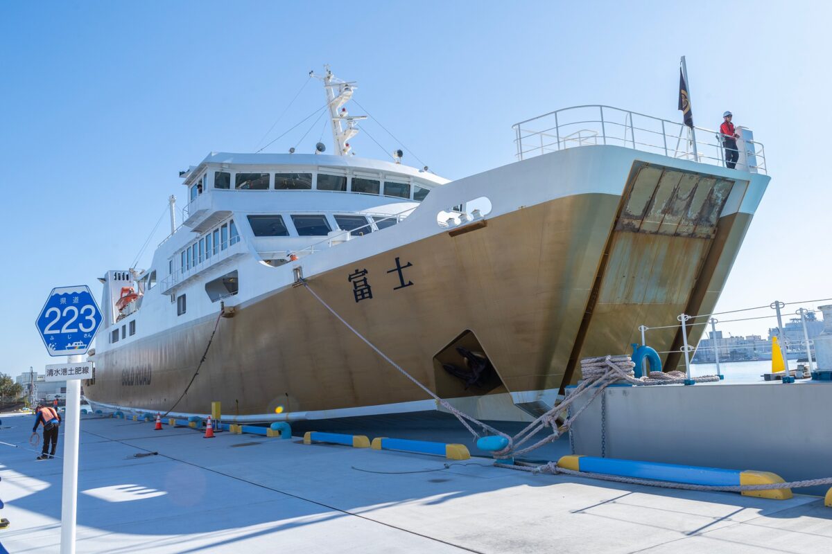 富士山と駿河湾の絶景を楽しみながら、90分のクルーズが楽しめる駿河湾フェリー。静岡市と伊豆半島を結ぶ「県道223号 清水港土肥線」を、旅のルートに組み込んでみてはいかがでしょうか?船内グルメも満喫しながら、のんびり過ごしてくださいね。