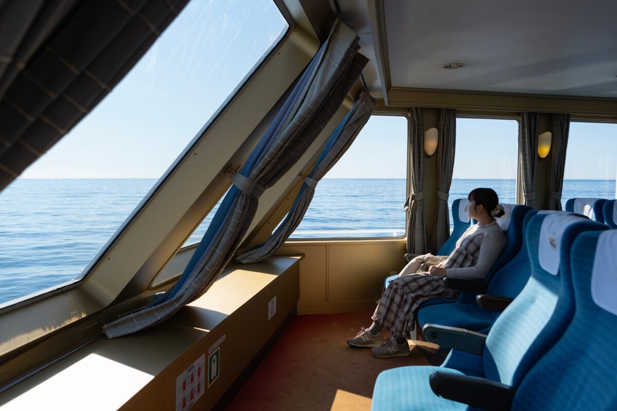 多彩な空間で、のんびり過ごせる駿河湾フェリーの船内