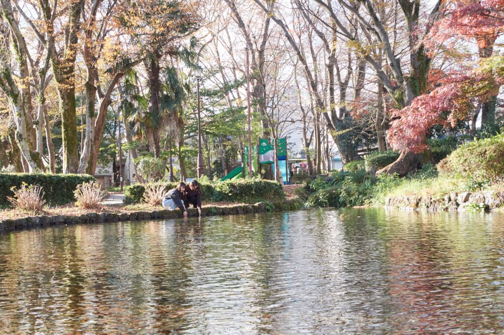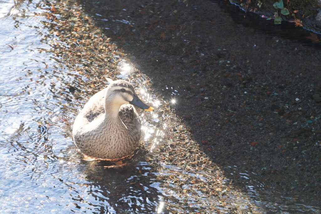 水面に反射する陽光が心地よい親水公園は生き物にとっても憩いの場