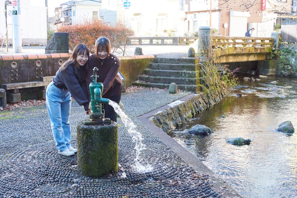 昔懐かしい手漕ぎポンプ。源兵衛川沿いは撮影スポットがたくさん