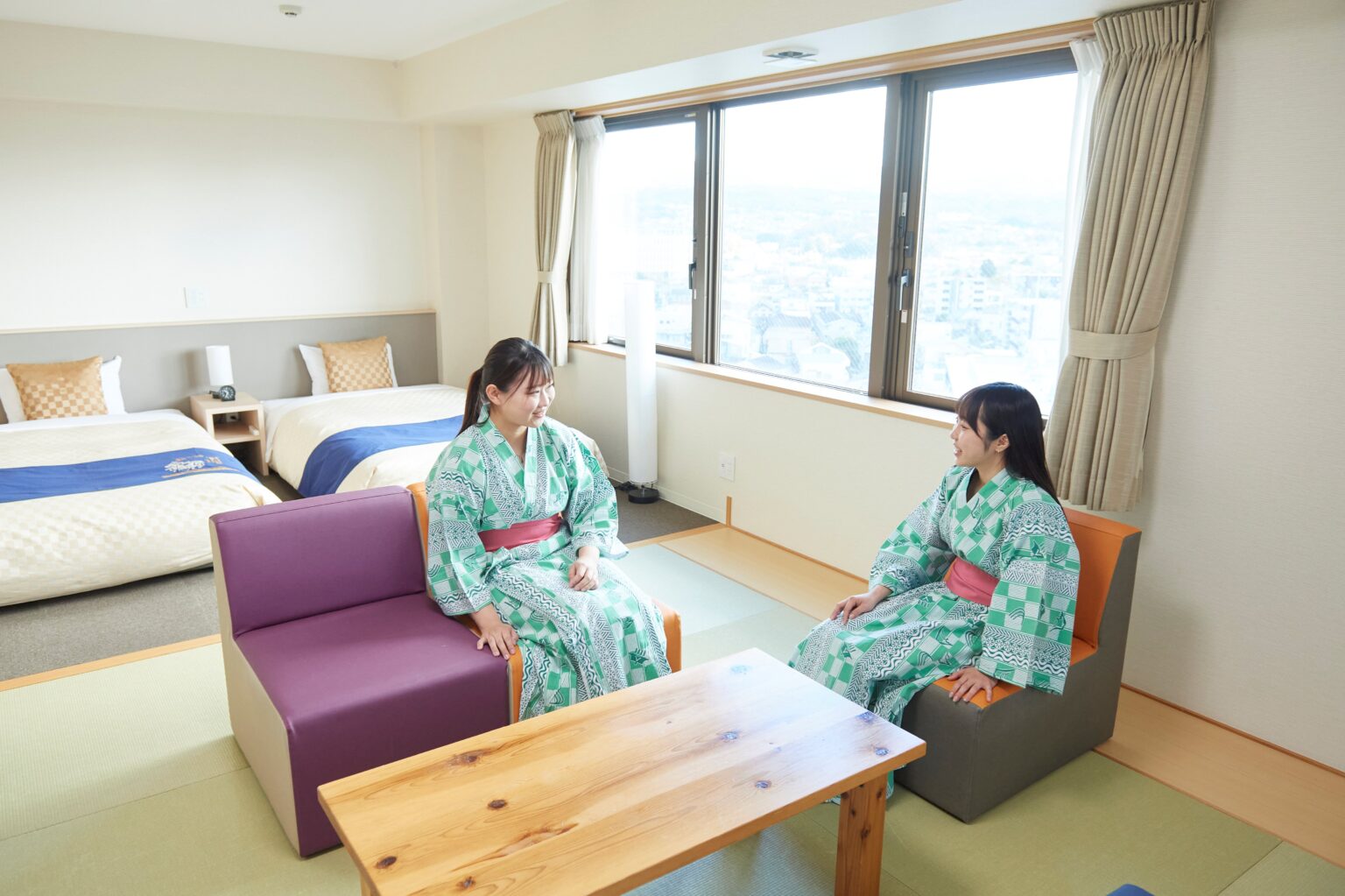 最上階の10階客室はすべて和洋室。家族でもグループでも最大6名が宿泊できるゆったりとした客室。畳でのんびり寛げます