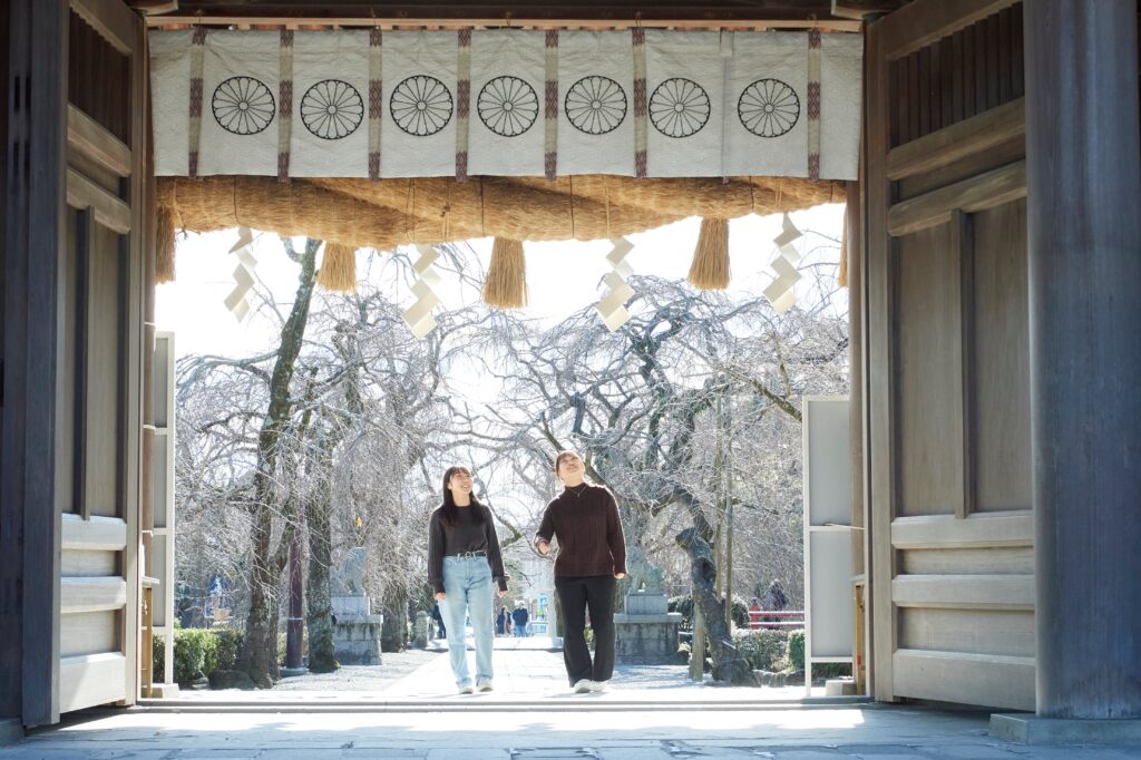 源氏再興の大願成就を果たし、征夷大将軍となった源頼朝が篤く崇敬した「三嶋大社」。古代より多くの偉人から崇敬を受けたと記録され、社格が高く、由緒ある神社はパワースポットとしても知られています。三嶋大社は大鳥居から本殿に向かい、総門、神門、舞殿が一直線に並び、境内に点在する建物や史跡はいずれも歴史的に貴重な遺産です。大鳥居をくぐると神池(しんち)の中に鎮座し、赤い社が目をひく厳島神社が現れます。境内には、天然記念物の金木犀(樹齢は推定1200年)や、重要文化財の総ケヤキ素木づくりの御殿などがあります。貴重な建物や史跡を巡った後は、「大社のよりどころ」に併設された福太郎茶屋の福太郎餅とお茶でほっと一息つきましょう。