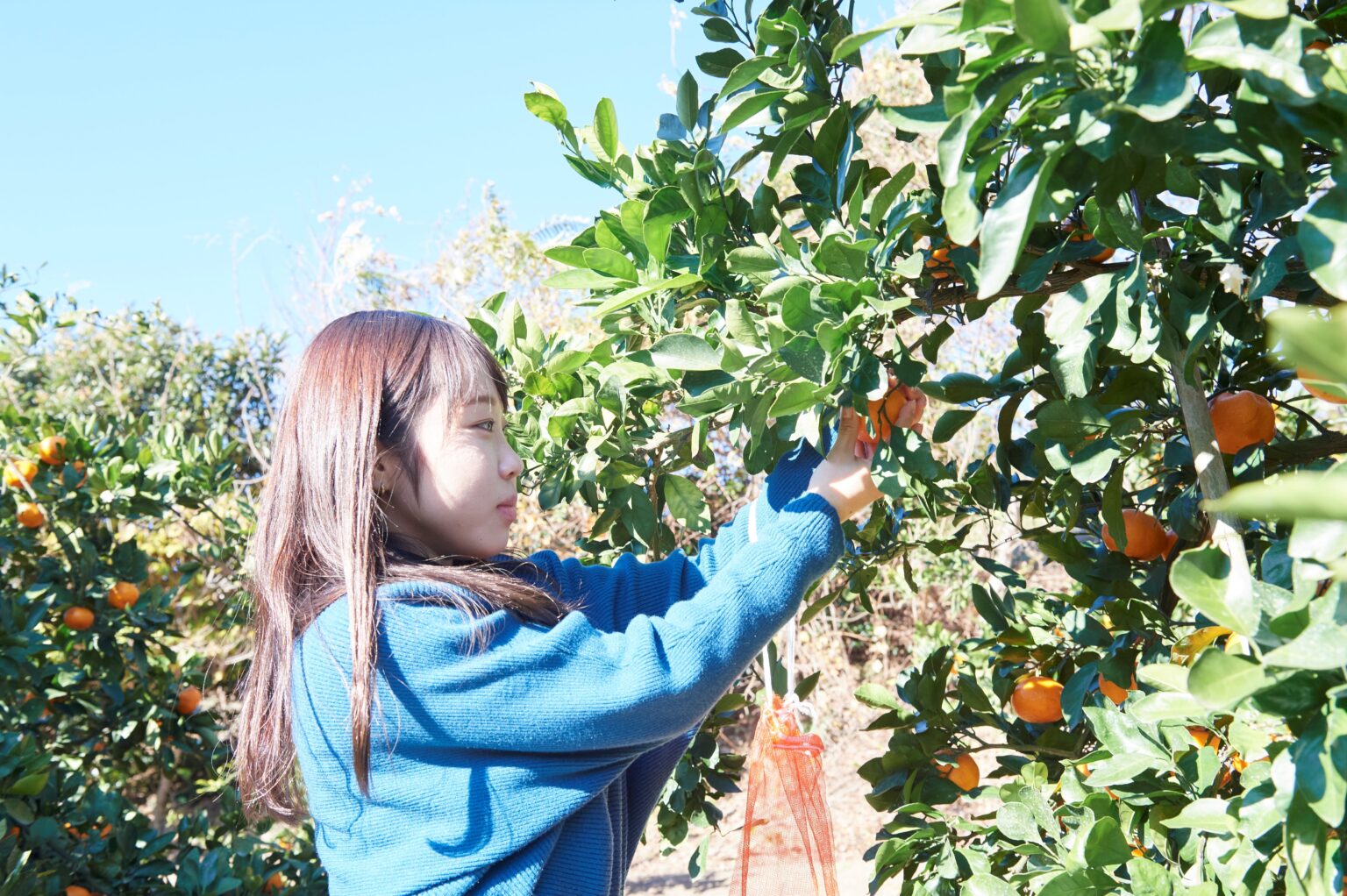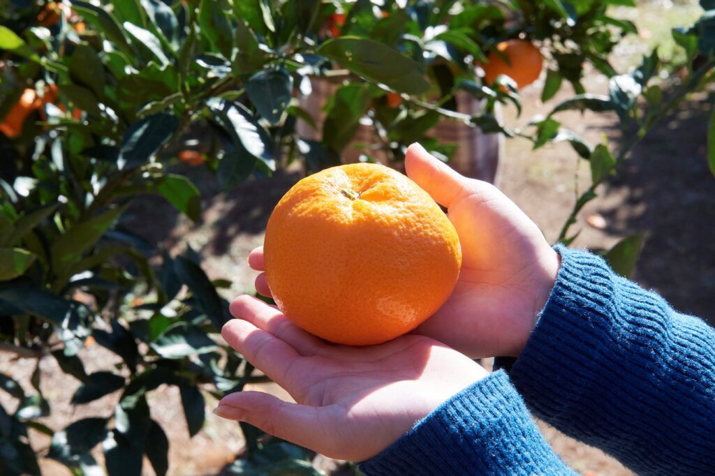 大きさや形を選びながらお気に入りを見つける、みかん狩りに夢中