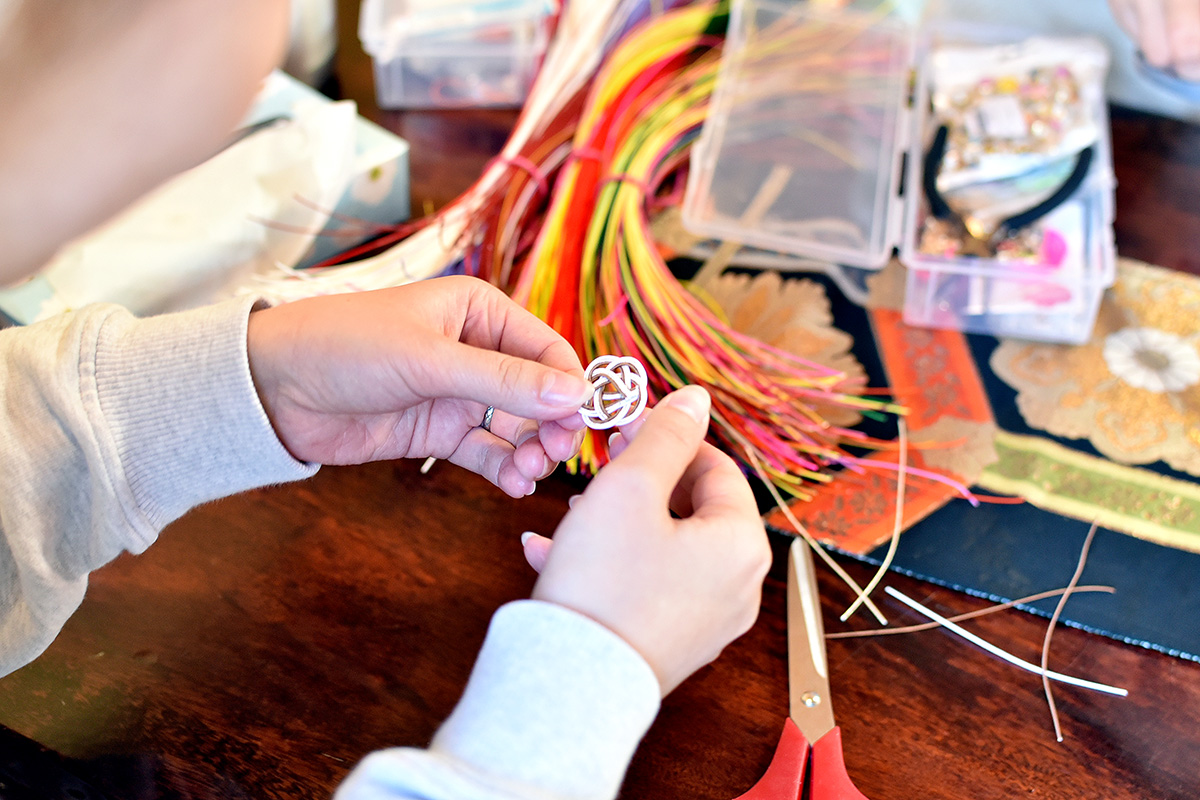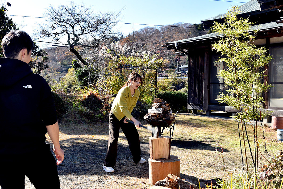 宿泊者は薪割りや野菜の収穫体験といった田舎暮らし体験のほか、日本の伝統文化である水引を使った小物づくり、習字体験など日本文化を楽しめます。