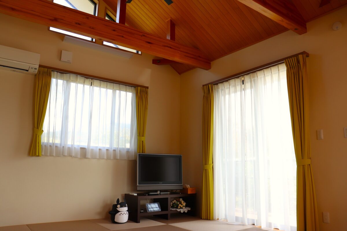 施設には、ダイニングと寝室兼用の和室があり、カーテンを開ければ部屋の中からも富士山を眺めることができます。