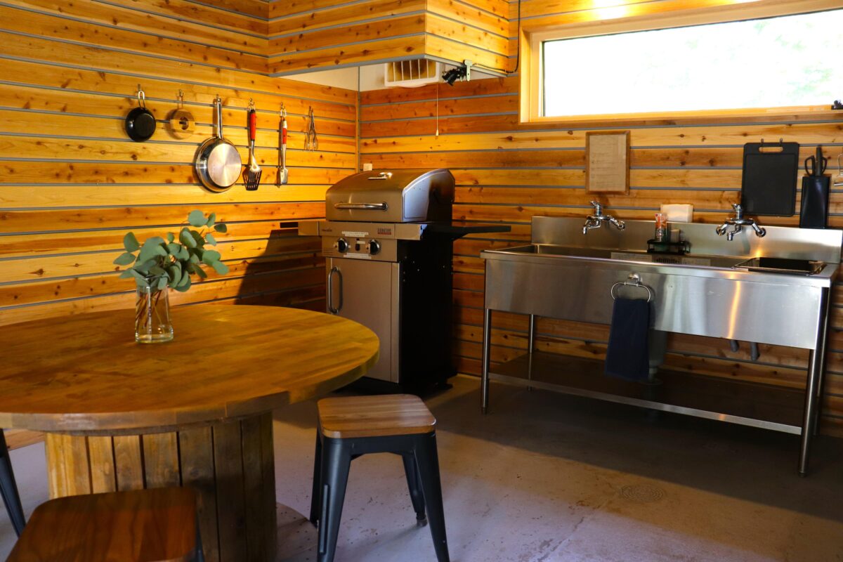 3,000円で利用できる1階のガレージには、暑い日や寒い日でも利用できるBBQセットが完備され、自家農園で採れた野菜を味わうこともできます。