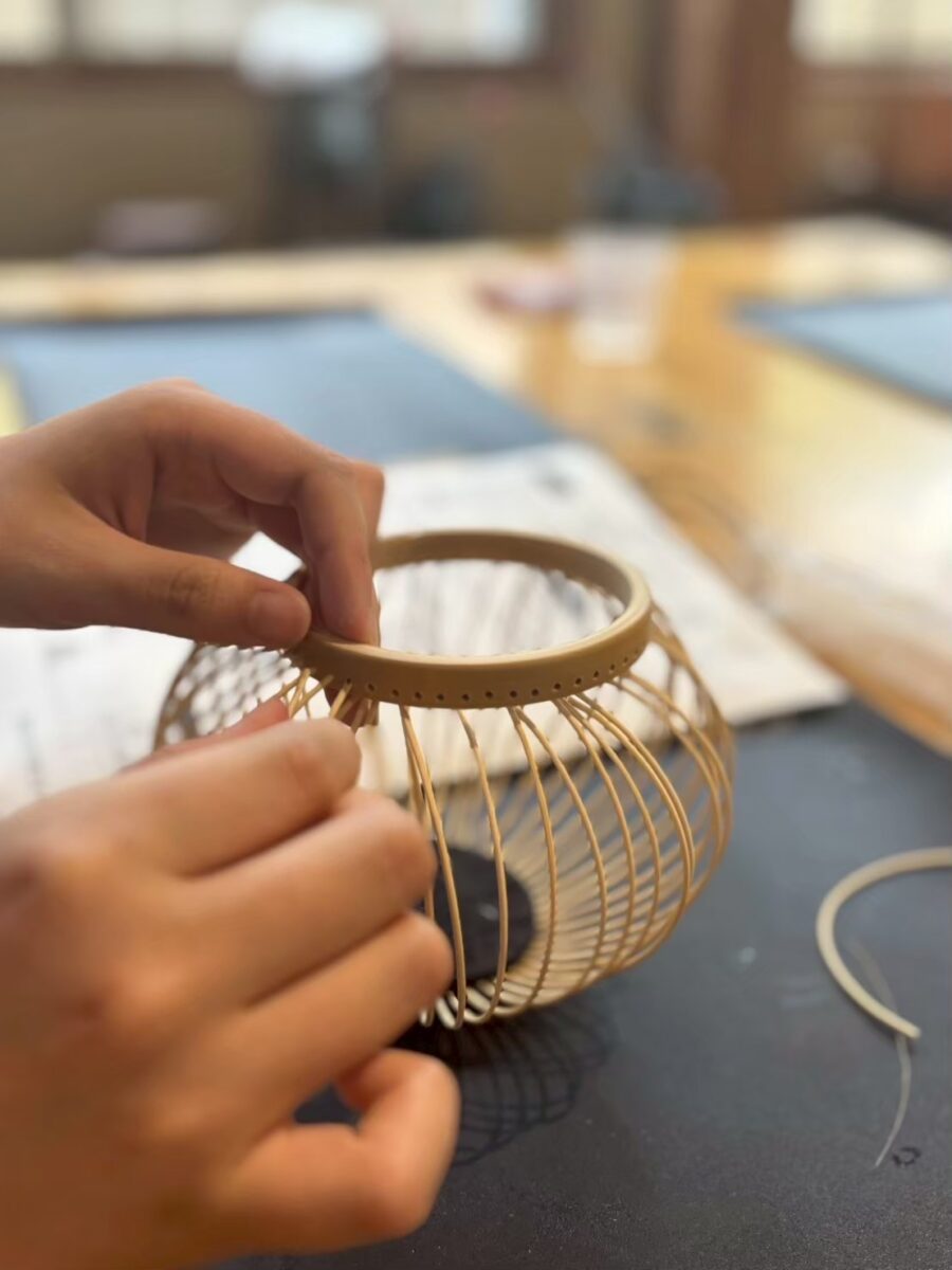 細かい作業で手元ばかり見ているので、完成時に全体を見たときには繊細な駿河竹千筋細工が美しくて感動しました!