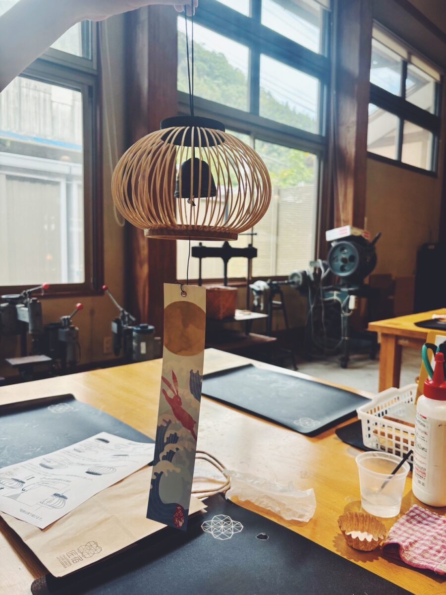 様々な駿河竹千筋細工があり、私は特に人気だという風鈴の駿河竹千筋細工に挑戦しました。吊るすタイプと置くタイプの2種類があり、私は吊るす風鈴にしました🎐