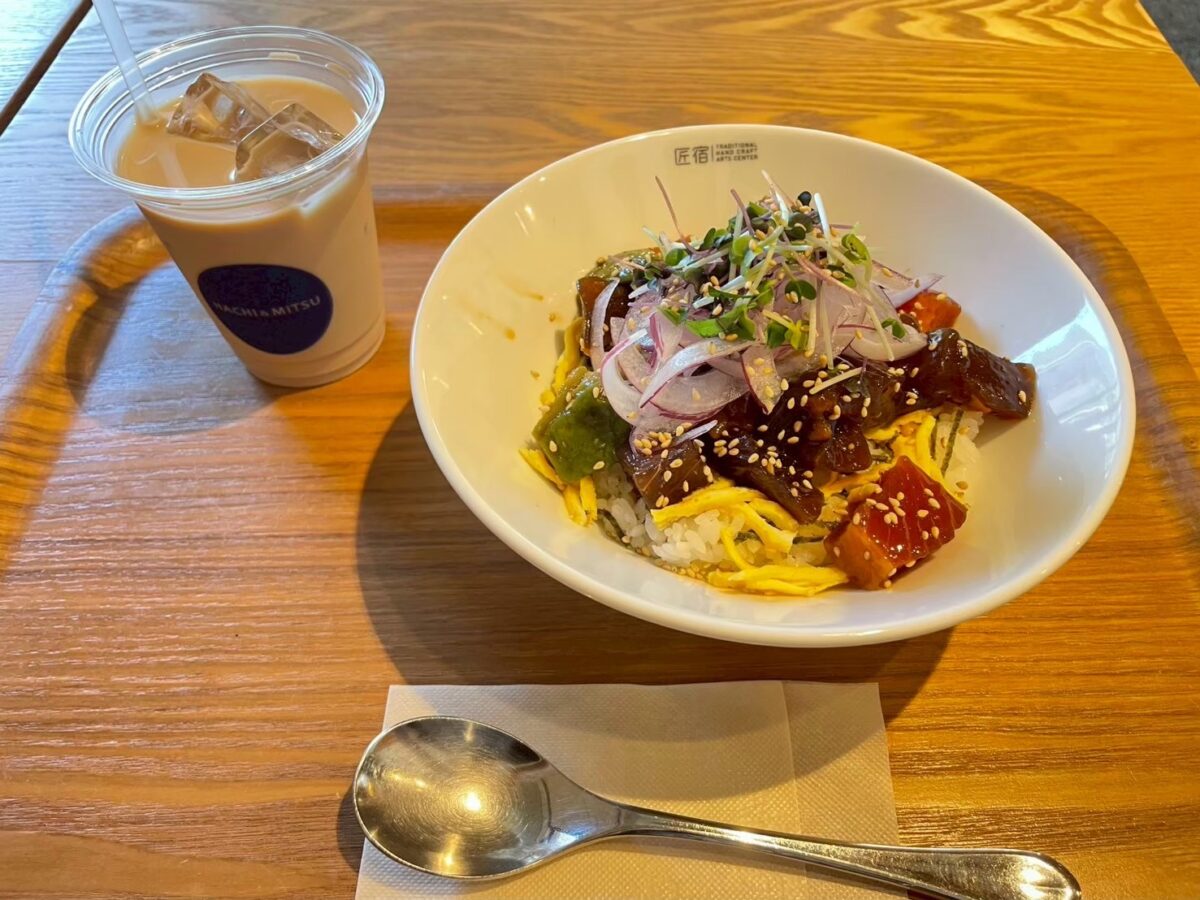 アボカドや玉ねぎ、錦糸たまごも入っていて、味に飽きることがありません。ごはんが進みます。