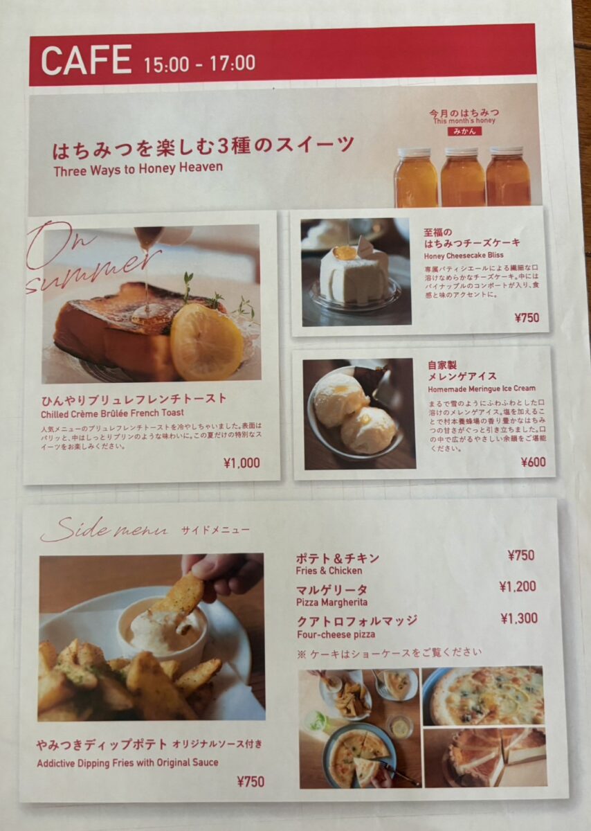 2025年4月からはメニューがリニューアルし、はちみつを楽しむスイーツを3種類提供しています。