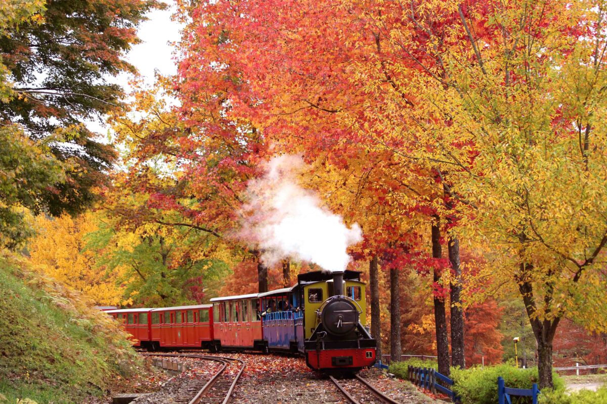 虹の郷(にじのさと)は、自然の景観を活かしたテーマパーク。SLと四季の自然が楽しい花の国です。