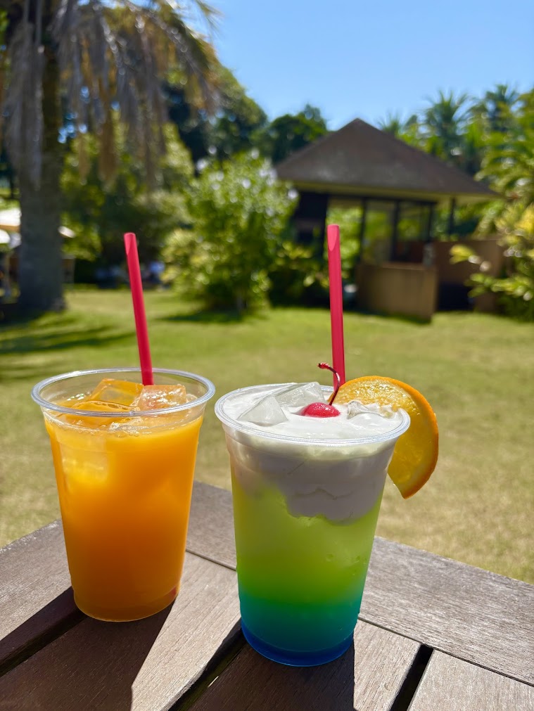 暑くてのどが渇いたのでアジアンガーデンの中にあるR-Asia BARという屋外の売店でドリンクを買いました。買ったのは、オレンジジュースとアイランドスカイ。見た目が可愛らしくて思わず写真を撮ってしまいました!