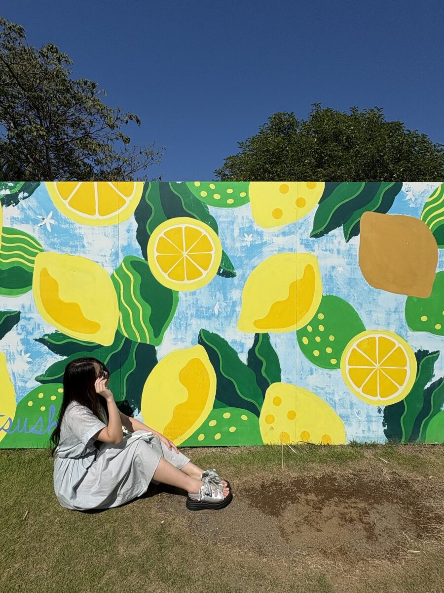 食堂街を抜けて進んでいくと道中でレモンをモチーフにしたフォトスポットを発見👀レモンのような黄色いポストとツーショット📸