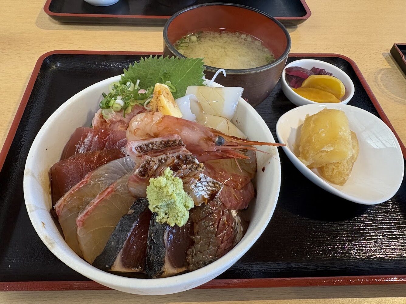迷いに迷って決めたのは、白扇(ハクセン)!人気1位の漁師海鮮丼を食べました。沢山の種類のお魚が乗っていてとても豪華✨初島の美味しい海の幸を楽しめました!