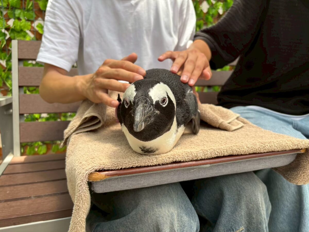 ペンギンに加えて気になるあの子も抱っこしちゃおう。