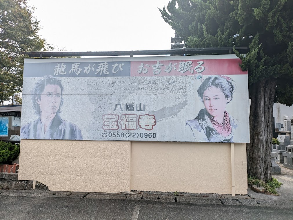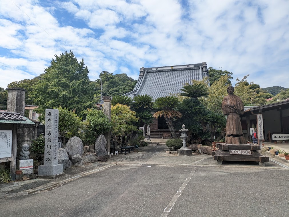 まず初めに訪れたのは巨大な坂本龍馬像が出迎える宝福寺。坂本龍馬好きには欠かすことのできない、歴史の行間が存在するお寺です。