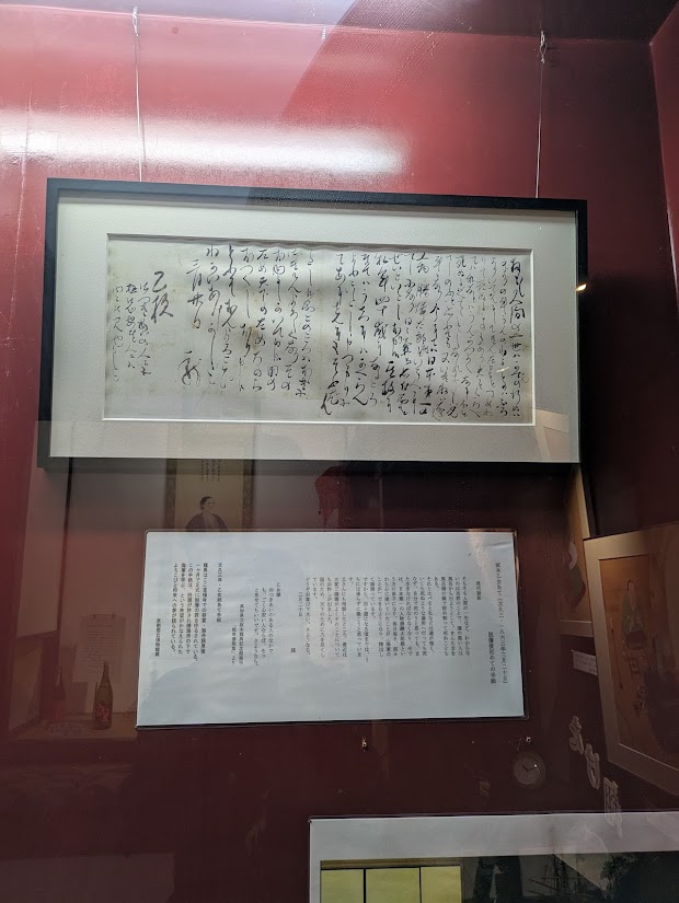 この宝福寺には脱藩を許した証拠である山内容堂のサイン入り扇子のレプリカや、龍馬が姉に向けて書いた手紙のレプリカが展示されています。