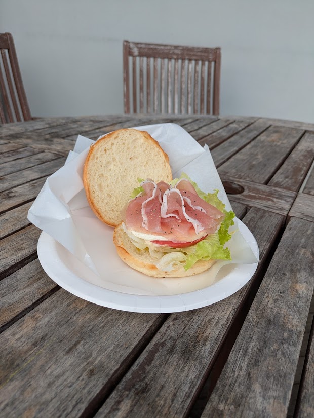 お次は生ハムとクリームチーズのハンバーガーです。特殊な味付けはされていないものの、生ハム本来の塩気とクリームチーズの独特な風味の相性がベストマッチで非常においしかったです。