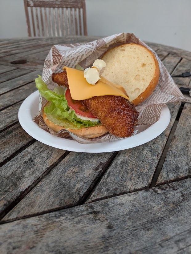 こちらの下田バーガー、金目鯛のフライのカリッとした食感とカマンベールの相性が抜群でした。